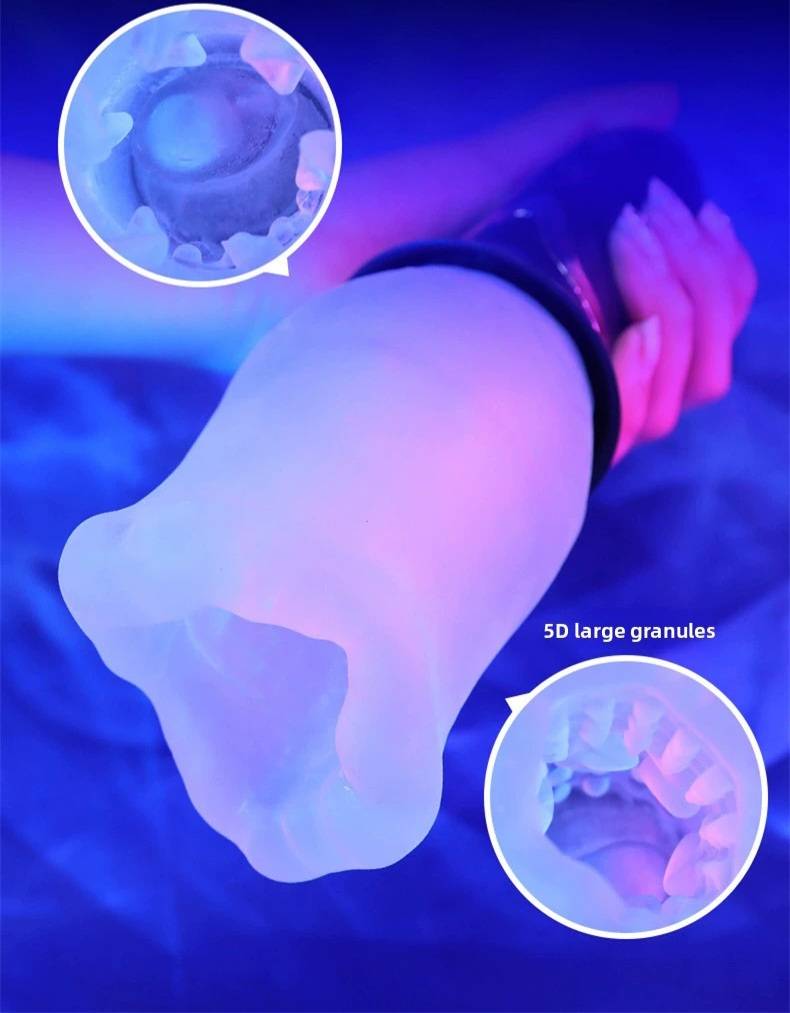 ปากกระบอกกว้าง 2.5 นิ้ว ยาว 3.5 นิ้ว ด้านในมีปุ่มเพิ่มเสียวเวลาโดนปั่น