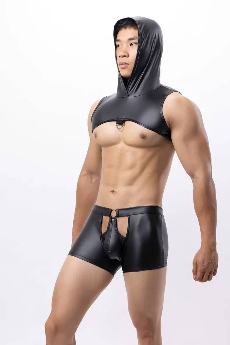 กางเกงขาสั้นโชว์เป้าผ้าหนังเทียม ( รหัส NG2969 )