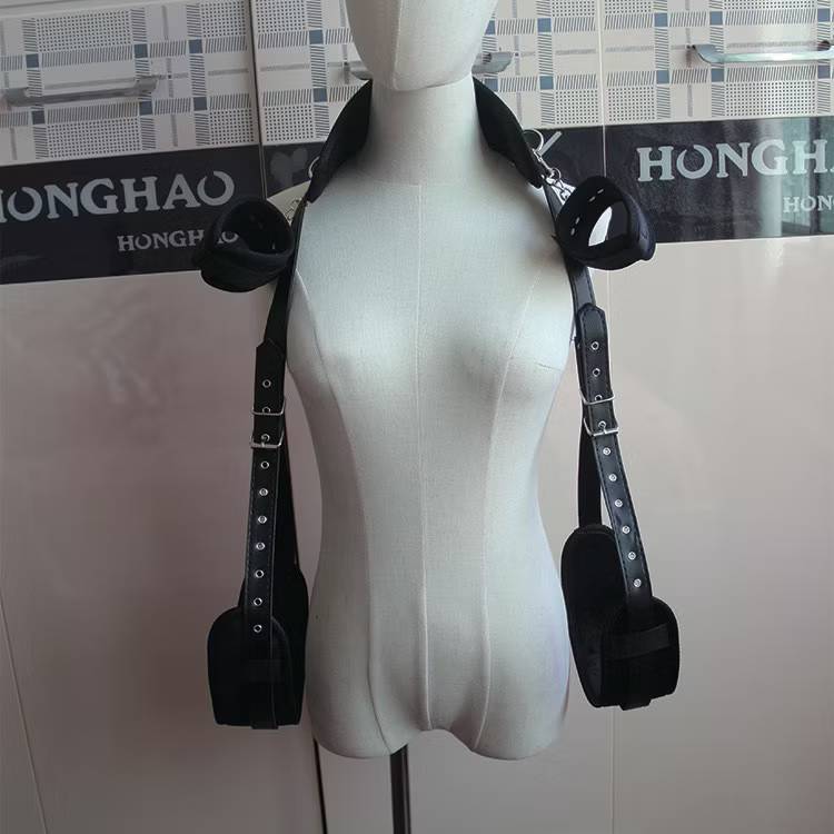 ชุดมัดขึงคู่รัก ทั้งขาและมือ รุ่นนี้ตรงที่รั้งขาจะเป็นสายหนัง เป็นแบบเข็มขัดมีรูปรับความกว้าง พร้อมแผ่น support รองต้นขา